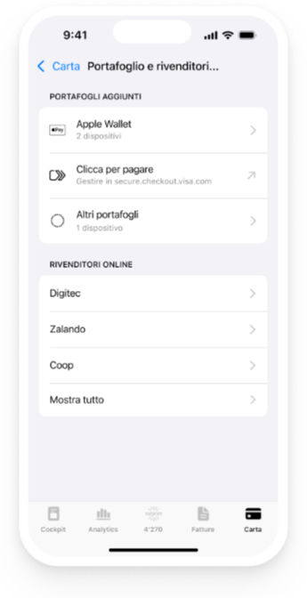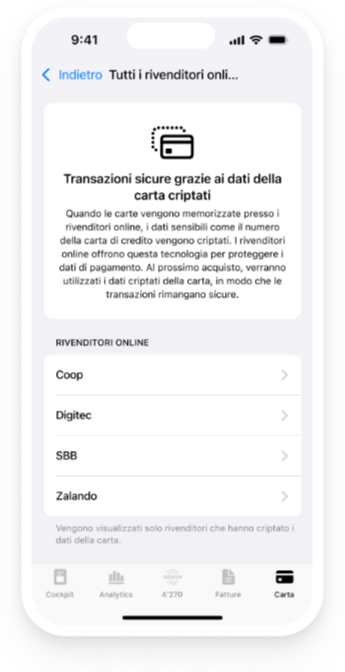 Tenere sotto controllo le finanze nella vita di tutti i giorni può essere impegnativo. L’app one rende tutto questo più facile che mai. Gestite a livello centralizzato tutte le vostre carte di credito, di debito e prepaid in modo sicuro e semplice in un unico luogo, impostate i vostri obiettivi di spesa individuali e approfittate di altre pratiche funzioni.